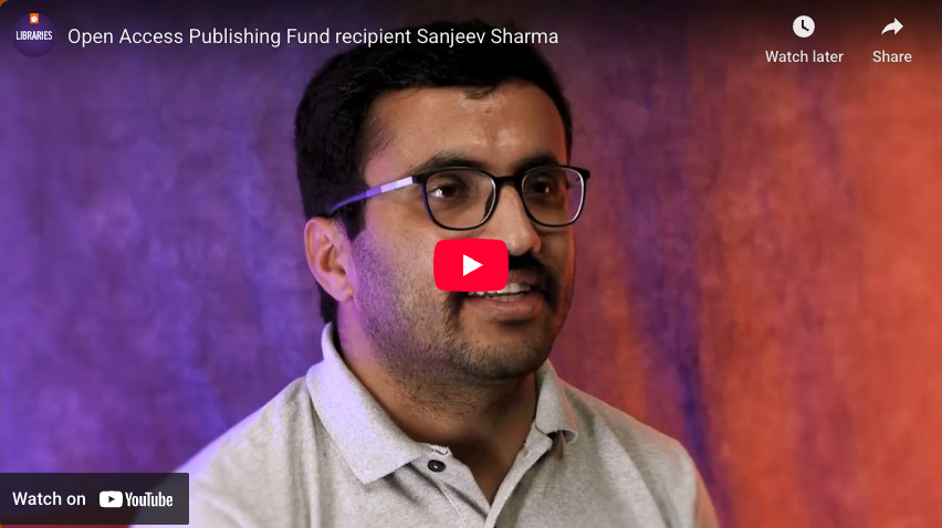 Click below to watch an interview with graduate student Sanjeev Sharma, one of this year’s OA Publishing Fund recipients.